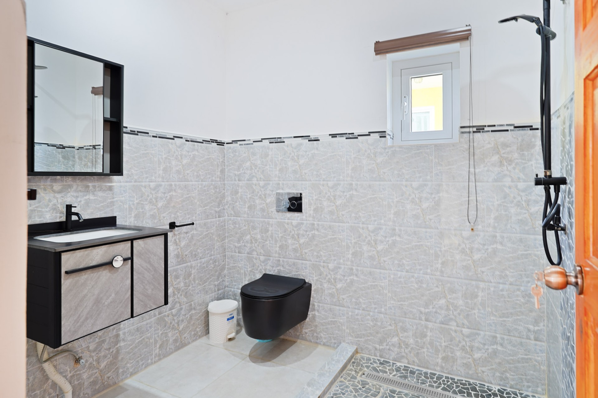 With three bedrooms and one bathroom on the ground floor, and both internal and external staircases, this property provides versatility and privacy in equal measure. The second floor, with two additional bedrooms opens onto a stunning terrace, while the spectacular rooftop terrace offers panoramic views over the north coast, the ocean, and the airport: the perfect spot to enjoy a cocktail or a glass of wine as you watch planes land and enjoy the sunset, or fireworks on New Year’s Eve.
