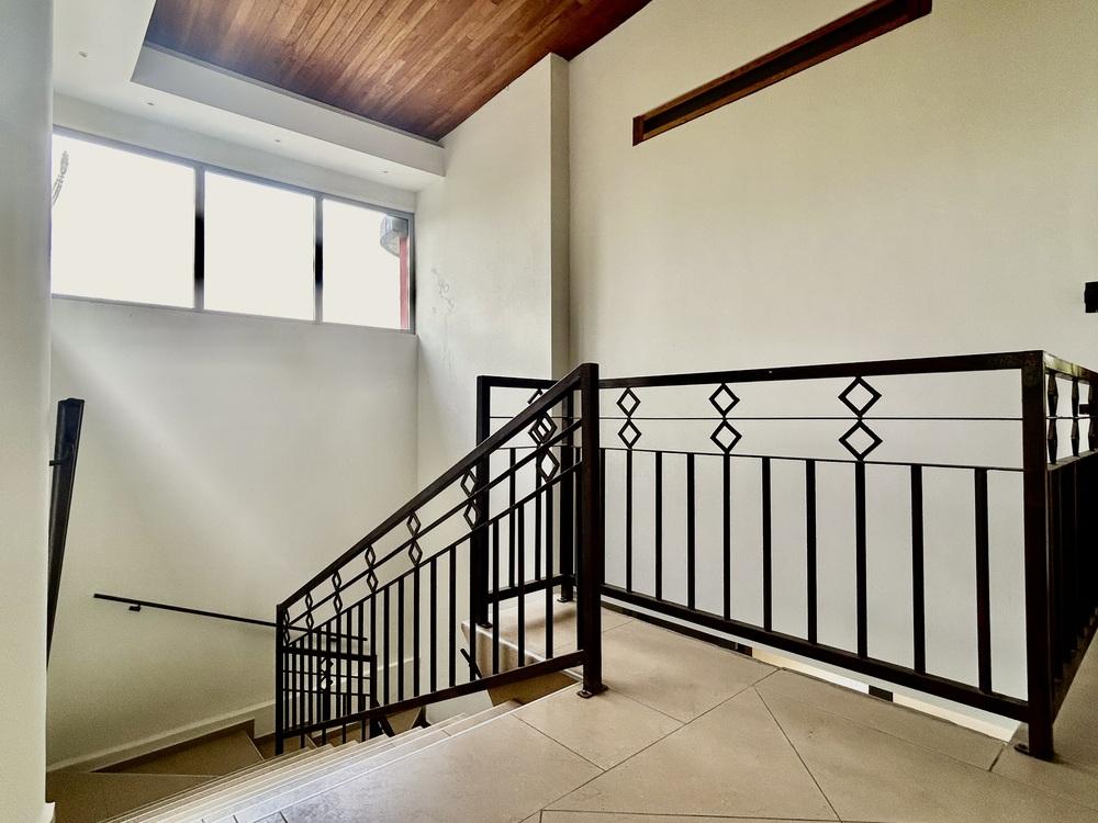 • A beautiful internal staircase with wrought iron railing