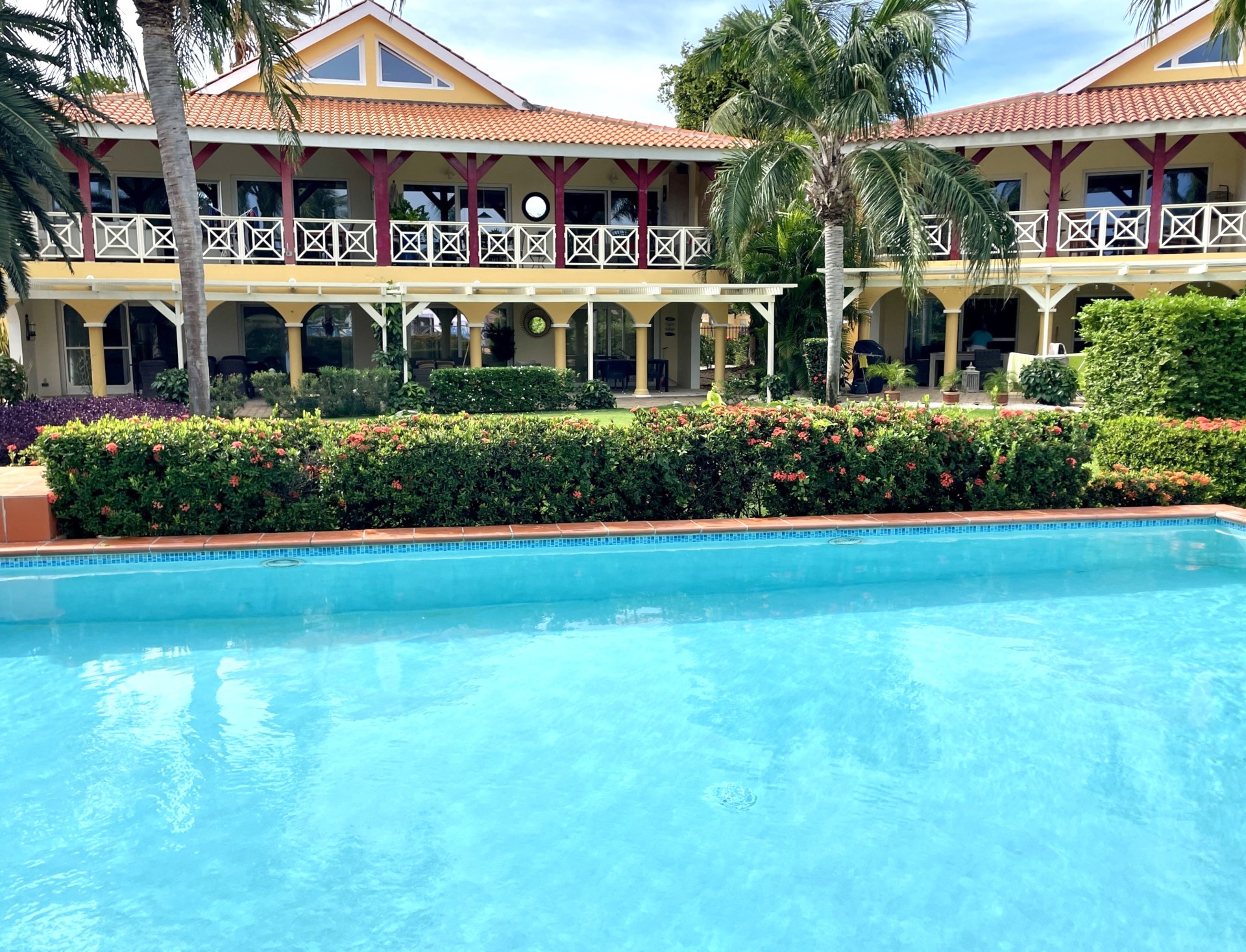This freshly painted apartment offers an open living and dining area with air conditioning, a fully equipped kitchen with stove, refrigerator, and dishwasher, and a spacious covered terrace ideal for outdoor lounging and dining. Relax and unwind on the pool deck while taking in the views of Spanish Water. From this peaceful spot, you can watch the boats at the marina making it the perfect place to start your morning with a coffee or end the day with a drink.